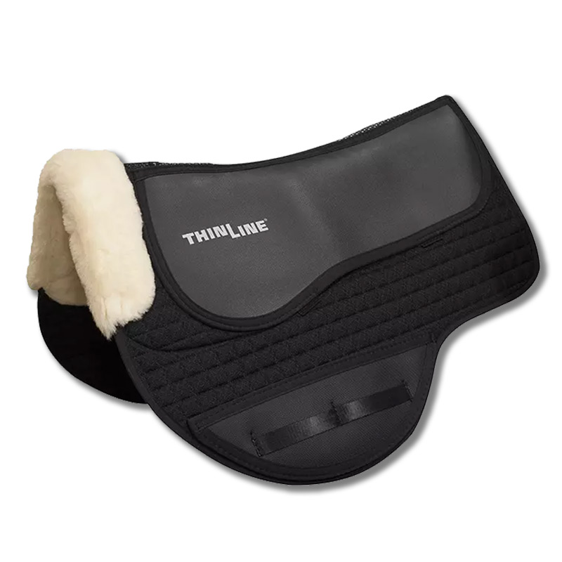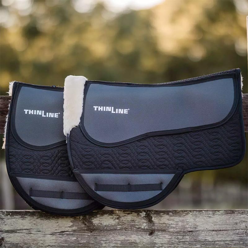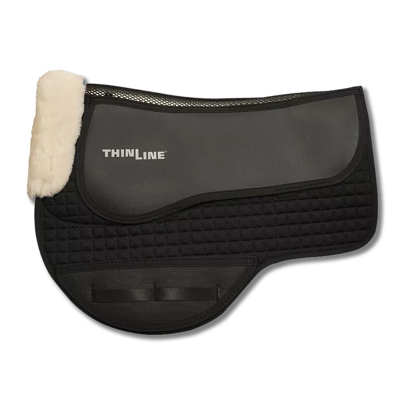 The base construction of this pad is made of a ventilating quilted Air-mesh material with a washable woven merino sheepskin base. The ThinLine lies on either side of the spine creating a perfect support panel that works well with endurance and treeless saddles. Bonus! Drop rig or extra girth, and